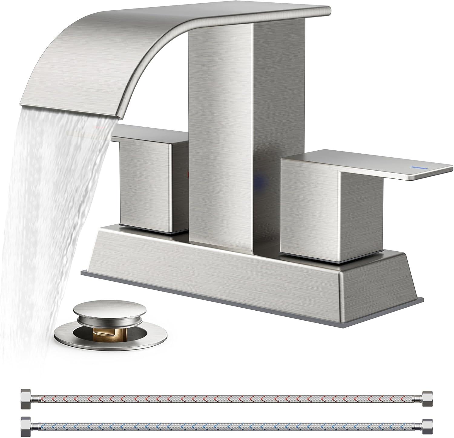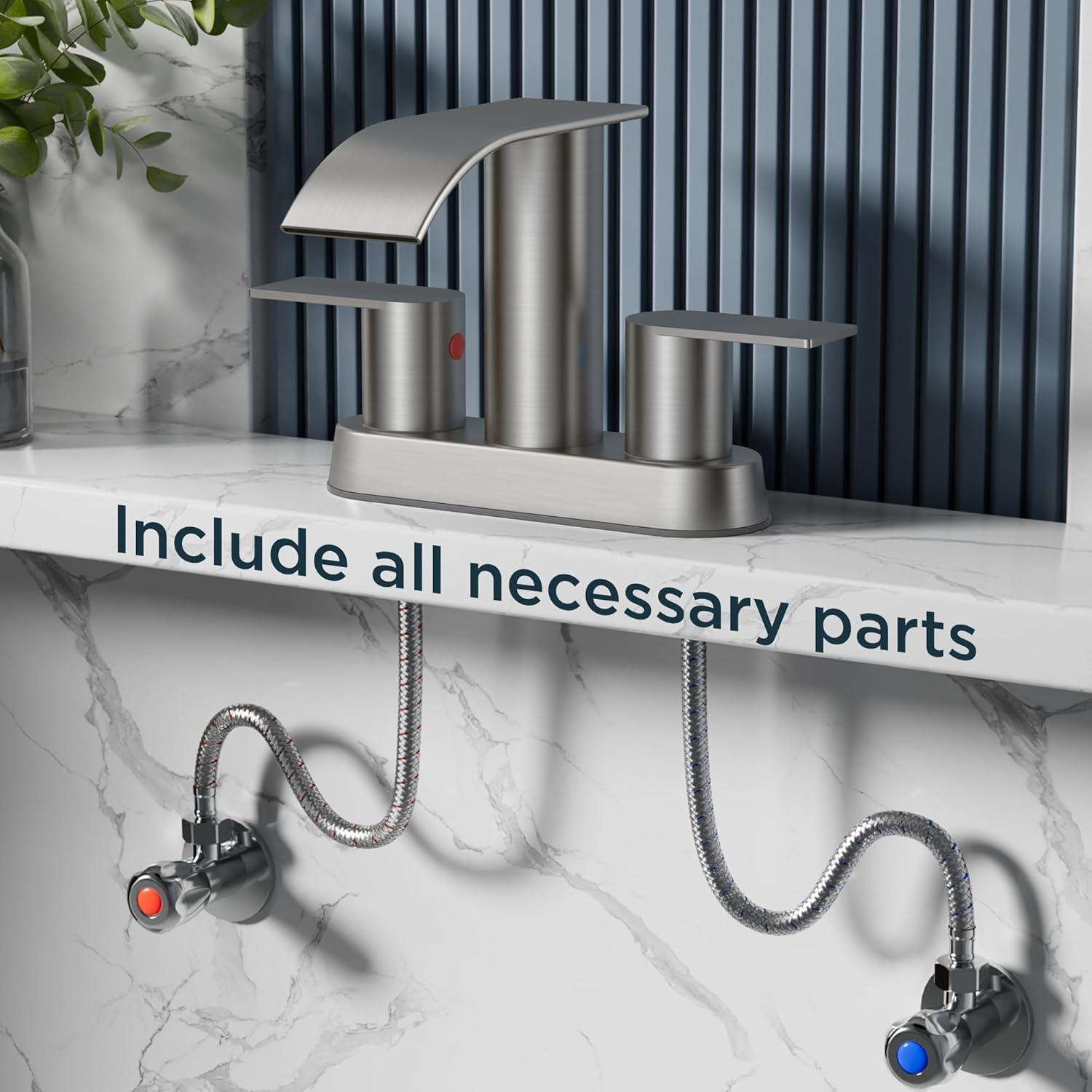 15-min Installation: 4 inch centerset bathroom faucet for 2 or 3 hole bathroom sink or counters includes hose(24″ 3/8'' threaded ) and required accessories, making installation convenient and requiring no plumber or specialized tools. With just a few simple steps, you can easily complete the installation. We provide detailed installation video to guide you through the process effortlessly