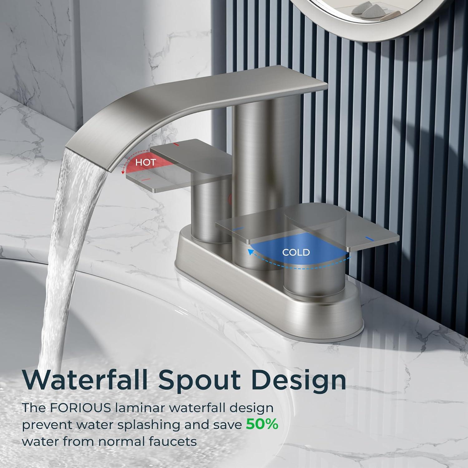 Leak-Free and Drip-Free: FORIOUS's Bathroom Faucets advanced drip-free ceramic valves tested for 500,000 times water tightness, 2 handles allow effortless flow and water temperature control, Flow rate: 1.2gpm/4.5L/min at Max 60psi