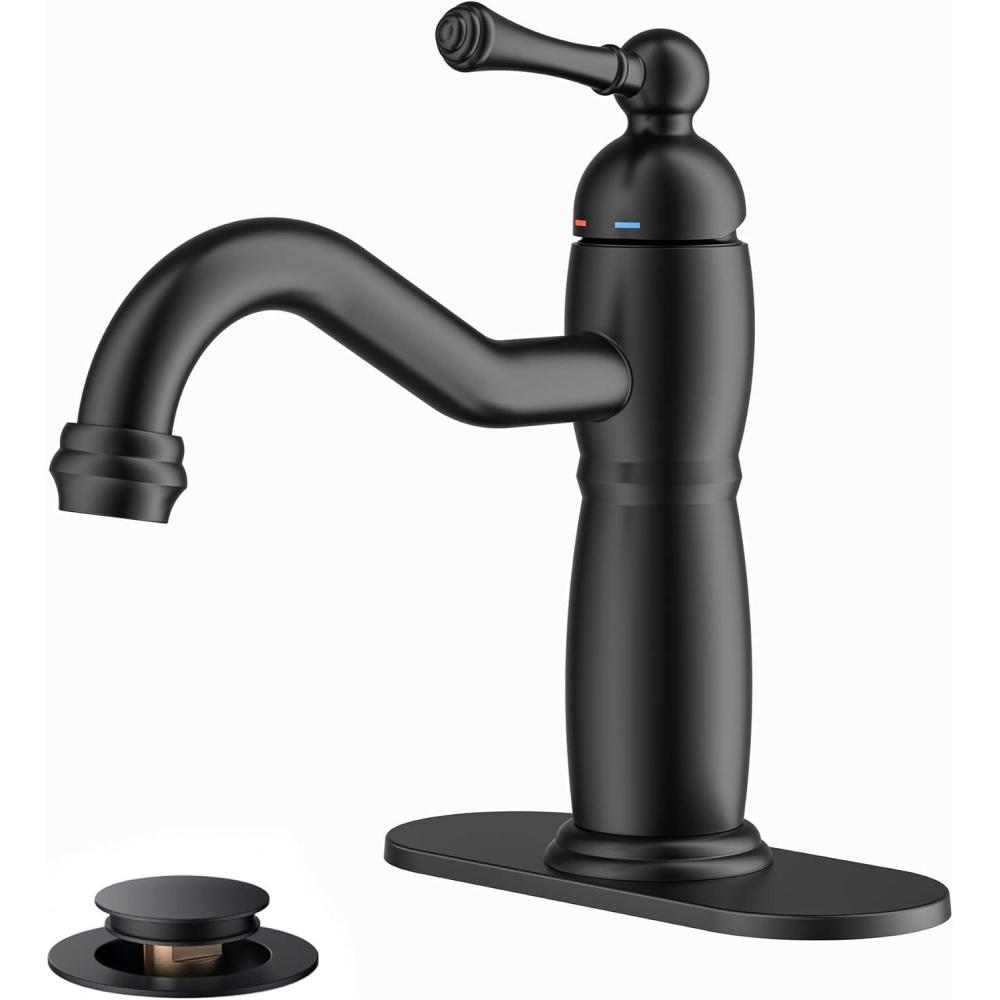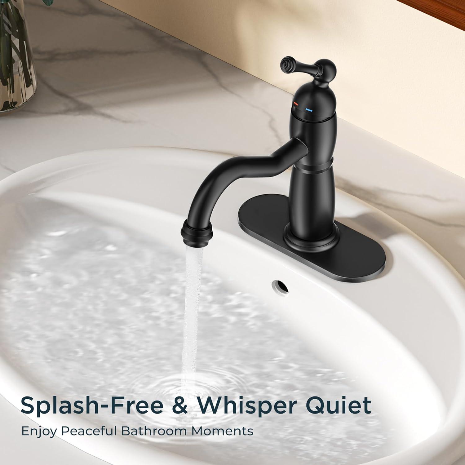 【Single Handle Precision Design】This single handle bathroom sink faucet combines vintage aesthetics with modern functionality. The ergonomic lever enables precise temperature and water flow control. The transitional design bridges farmhouse charm with contemporary bathroom styles through its antique brass vanity faucet detailing.