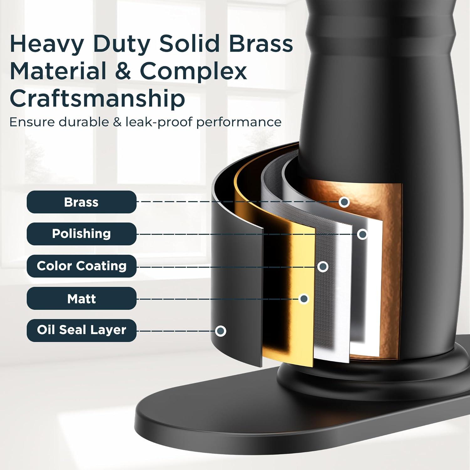 【Solid Brass Farmhouse Bathroom Faucet】Crafted with solid brass construction and Class 10 antique brass vanity faucet finish, our sink faucet features 3-layer nano-coating technology. The fingerprint-resistant surface maintains its vintage charm while resisting corrosion, discoloration, and mineral deposits – perfect for farmhouse bathroom faucet installations requiring lasting elegance.