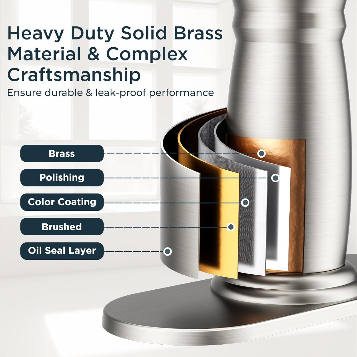 【Solid Brass Farmhouse Bathroom Faucet】Crafted with solid brass construction and Class 10 antique brass vanity faucet finish, our sink faucet features 3-layer nano-coating technology. The fingerprint-resistant surface maintains its vintage charm while resisting corrosion, discoloration, and mineral deposits – perfect for farmhouse bathroom faucet installations requiring lasting elegance.