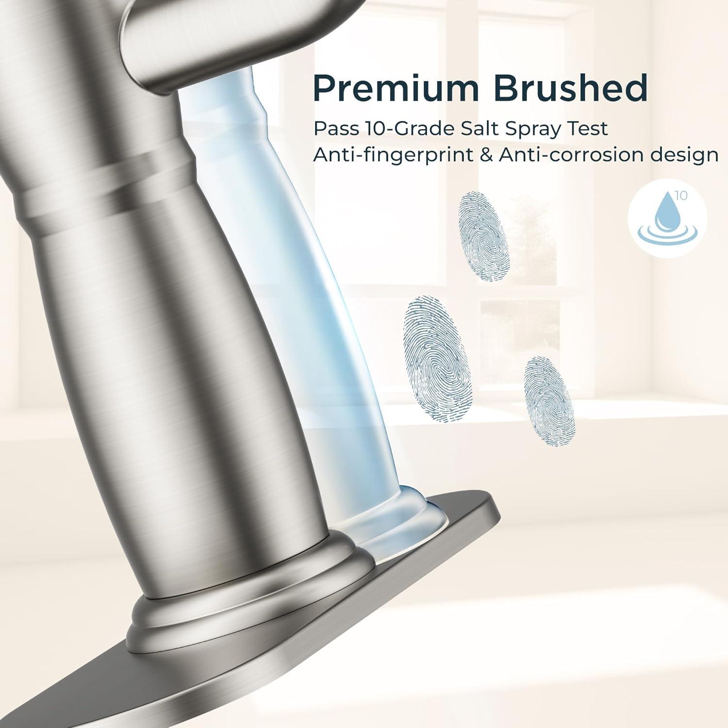 【Lifetime Drainage Solutions】This bathroom sink faucet package includes commercial-grade pop-up drain with brass linkage system. The one hole bathroom sink faucet's drain assembly features PEX-reinforced connections and tool-free adjustment, compatible with 1.26″-1.3″ waste pipes. Backed by 5-year warranty and 24/7 US-based technical support.