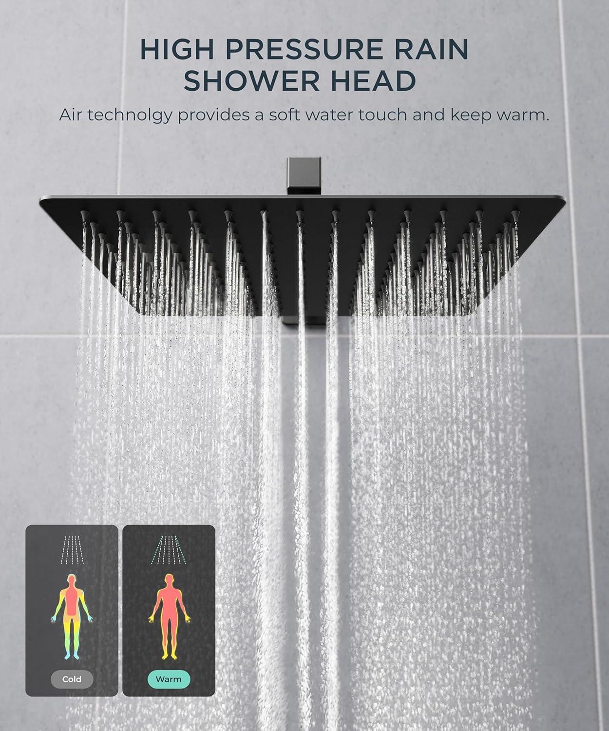 Relaxing Shower Experience: Enjoy a luxurious shower with the air pressurization technology of the rain shower head, which delivers a powerful, consistent rain shower experience, even under low water pressure