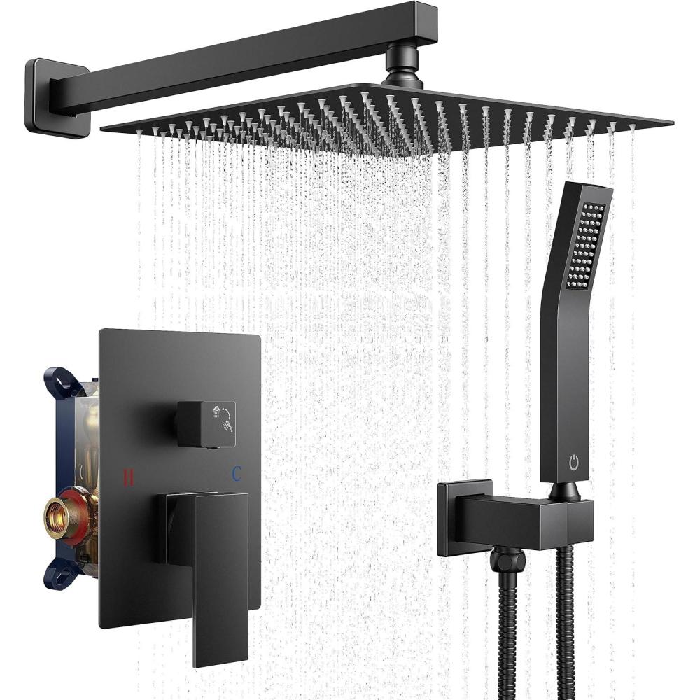 imageFORIOUS Rain Shower Head System 10 Inch Shower Faucet Set with with handheld combo Solid Brass Pressure Balanced Valve and Trim Kit Fixtures Wall Mounted Brushed Nickel Matte Black 12 inchMatte Black