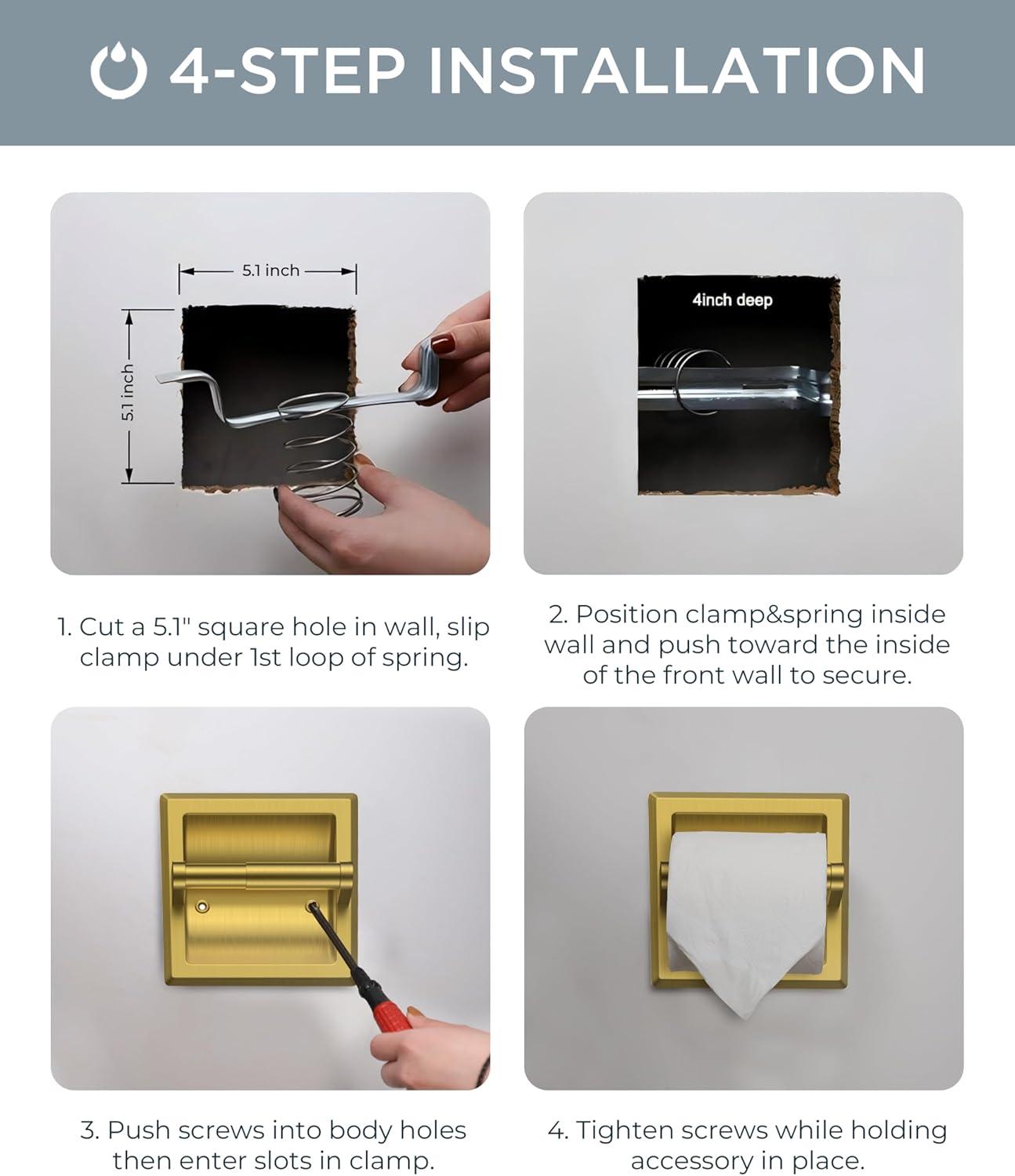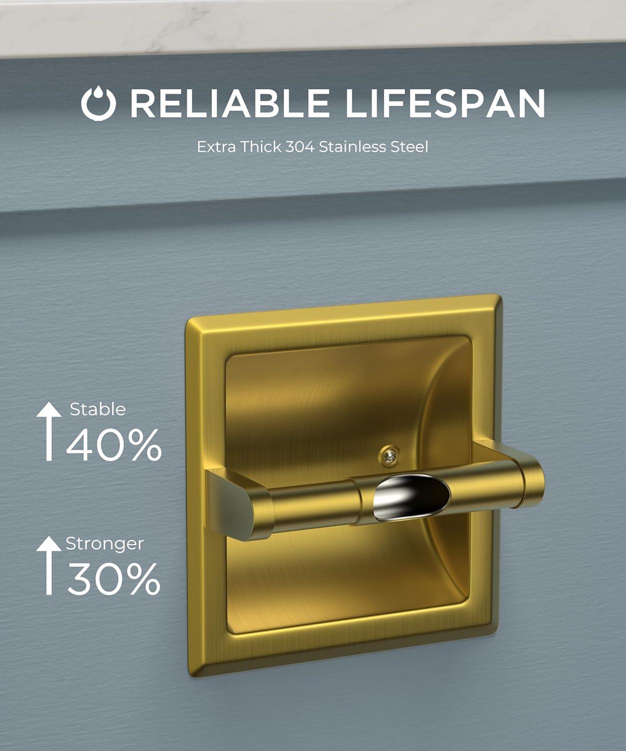 CLASSIC AMERICAN: The inset toilet paper holder structure is more sturdy, it can be installed in kitchen wooden cabinets, bathroom cement walls, bathroom cabinets, etc. The recessed design prevents everyday scratches, keeps dry and saves space