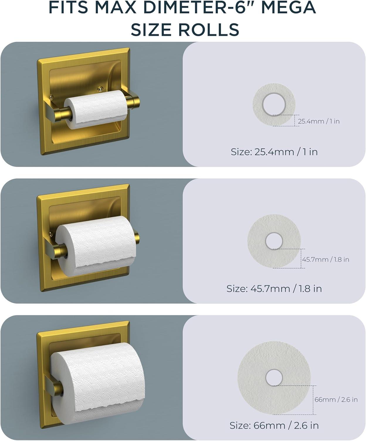 MEGA ROLL HOLDER: Deep tested to accommodate mega-large paper rolls well with a diameter of up to 6 inches. FORIOUS recessed toilet paper holder provides continuous parts replacement and dedicated technical support, there is nothing more convincing than reliability