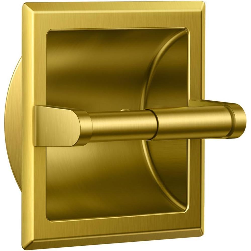 imageFORIOUS Recessed Toilet Paper Holder Stainless Steel Durable Tissue Roll Holder Wall Mount for Bathroom Space Saving Design with Mounting Bracket in Wall Toilet Paper Dispenser Insert Matte BlackGold