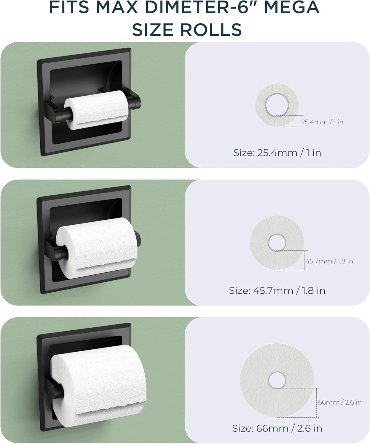 MEGA ROLL HOLDER: Deep tested to accommodate mega-large paper rolls well with a diameter of up to 6 inches. FORIOUS recessed toilet paper holder provides continuous parts replacement and dedicated technical support, there is nothing more convincing than reliability