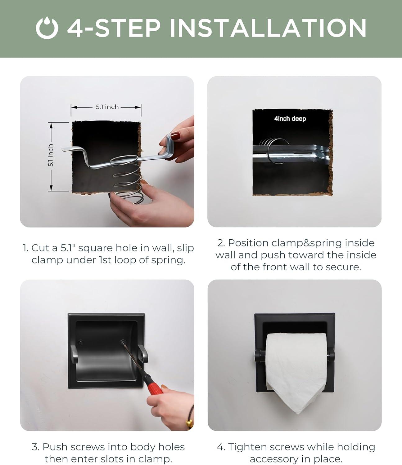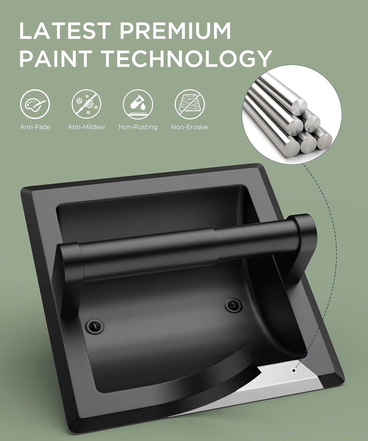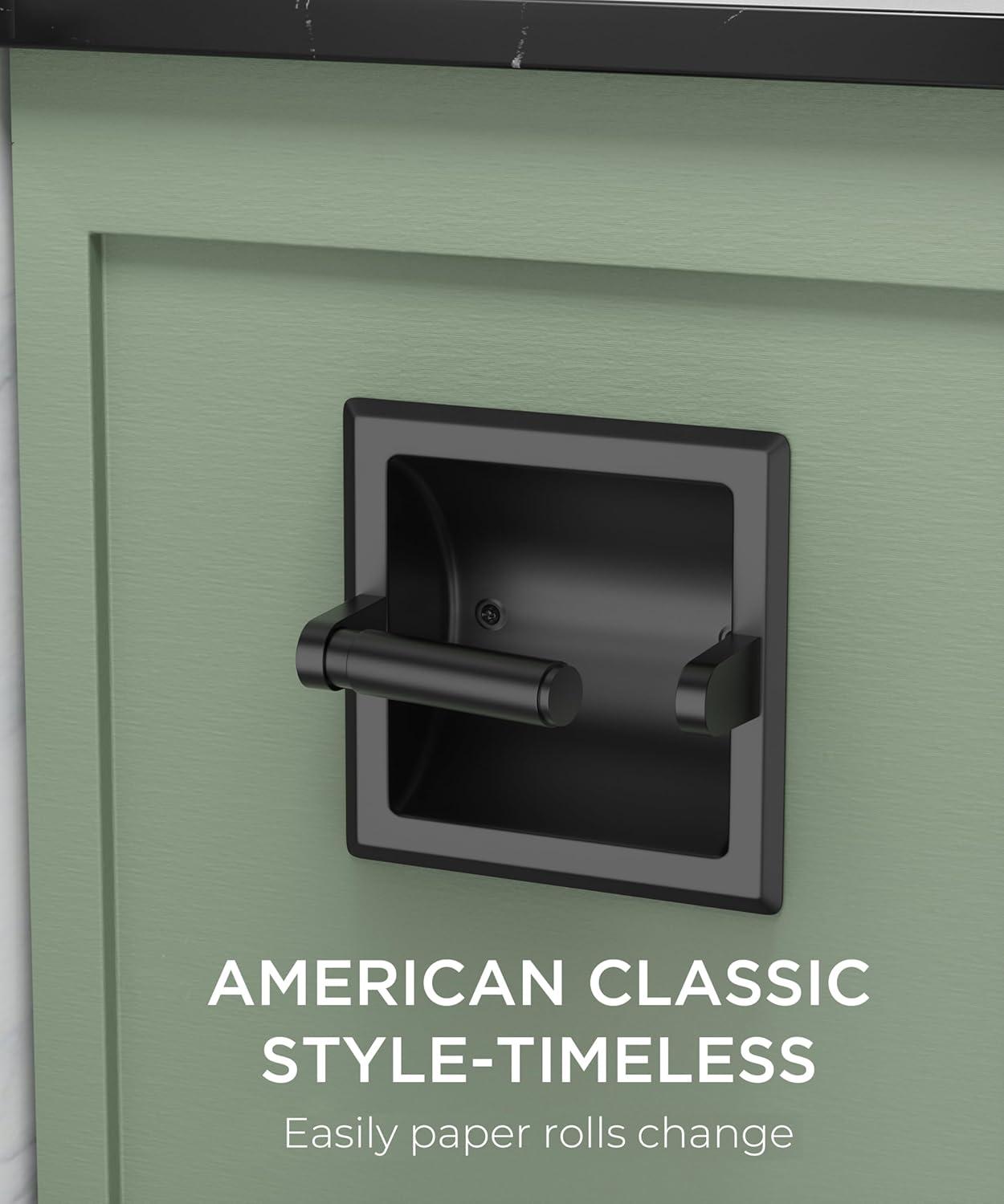 CLASSIC AMERICAN: The inset toilet paper holder structure is more sturdy, it can be installed in kitchen wooden cabinets, bathroom cement walls, bathroom cabinets, etc. The recessed design prevents everyday scratches, keeps dry and saves space
