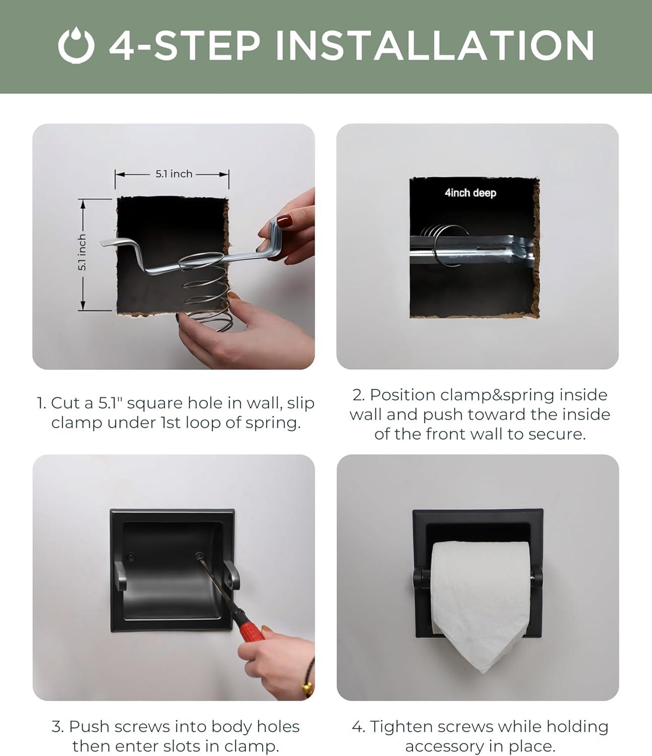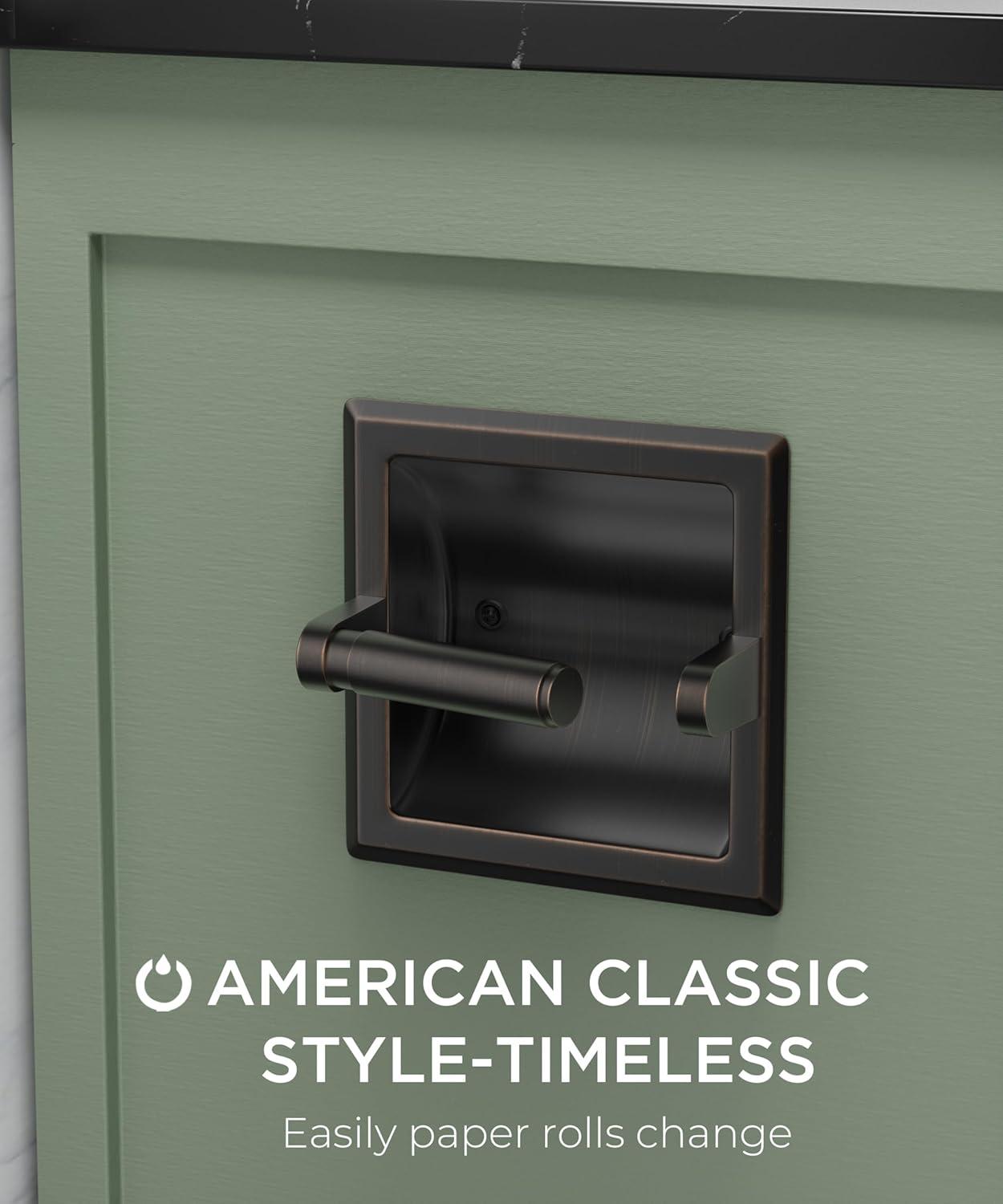 CLASSIC AMERICAN: The inset toilet paper holder structure is more sturdy, it can be installed in kitchen wooden cabinets, bathroom cement walls, bathroom cabinets, etc. The recessed design prevents everyday scratches, keeps dry and saves space