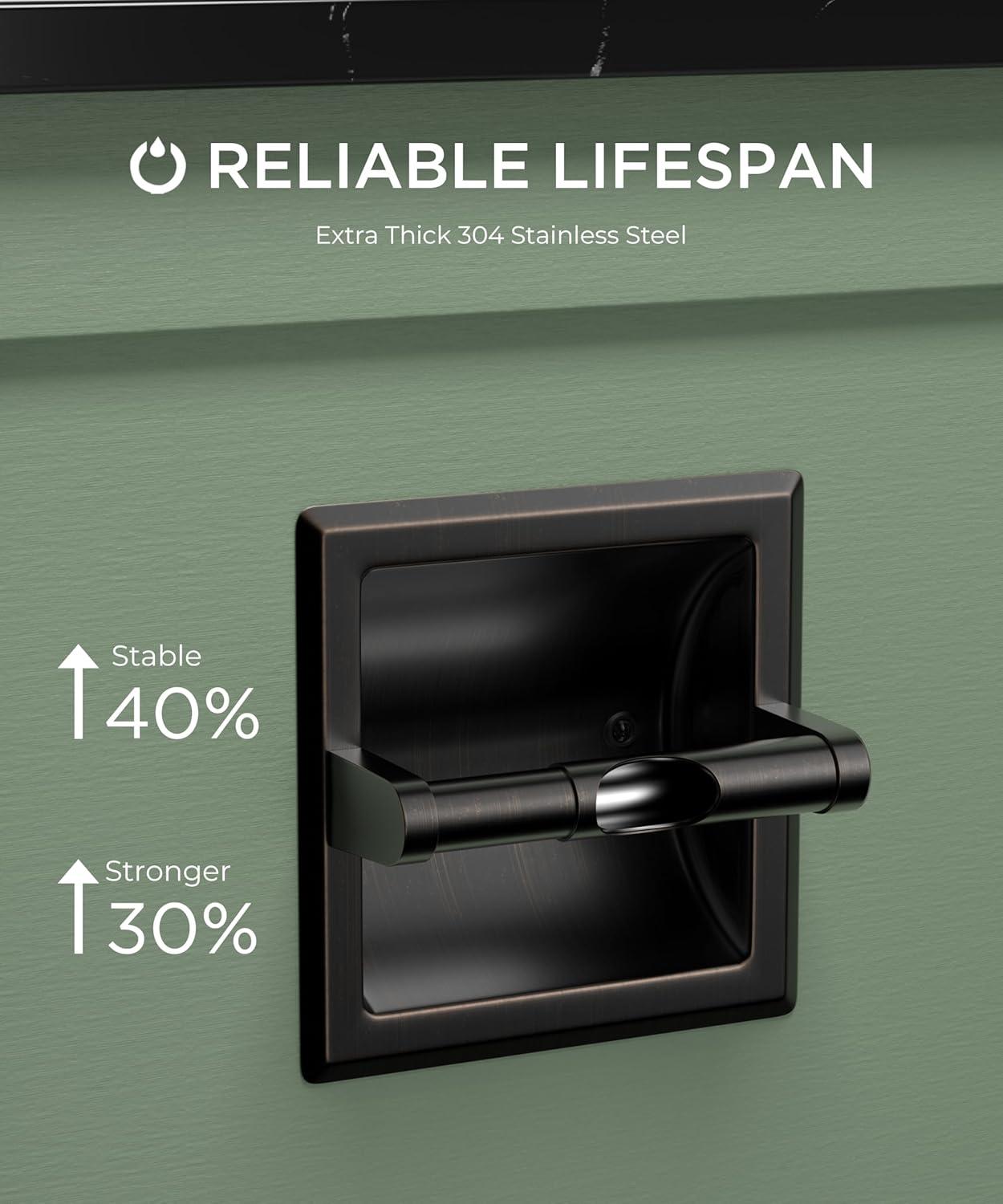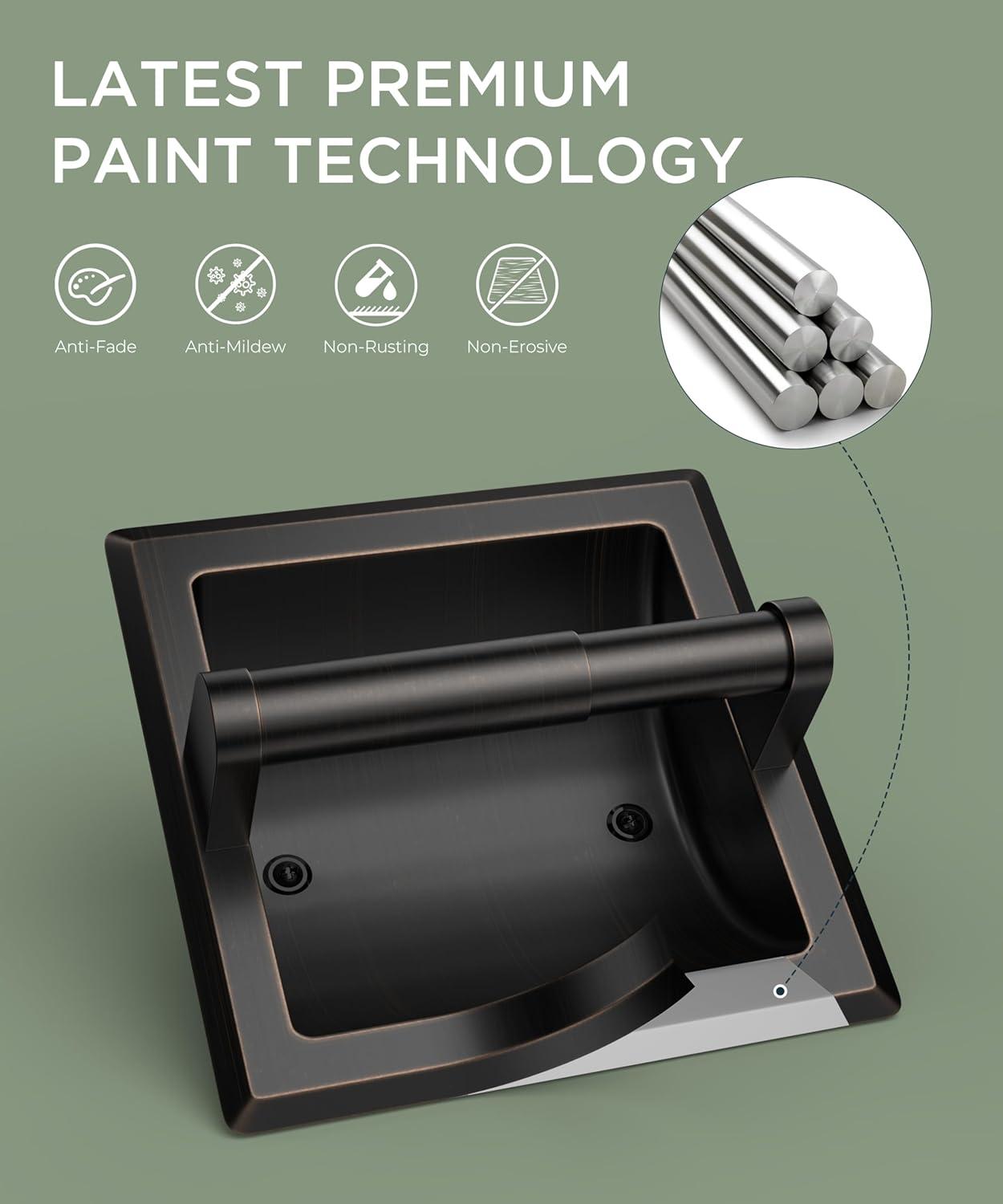 imageFORIOUS Recessed Toilet Paper Holder Stainless Steel Durable Tissue Roll Holder Wall Mount for Bathroom Space Saving Design with Mounting Bracket in Wall Toilet Paper Dispenser Insert Matte BlackOil Rubbed Bronze
