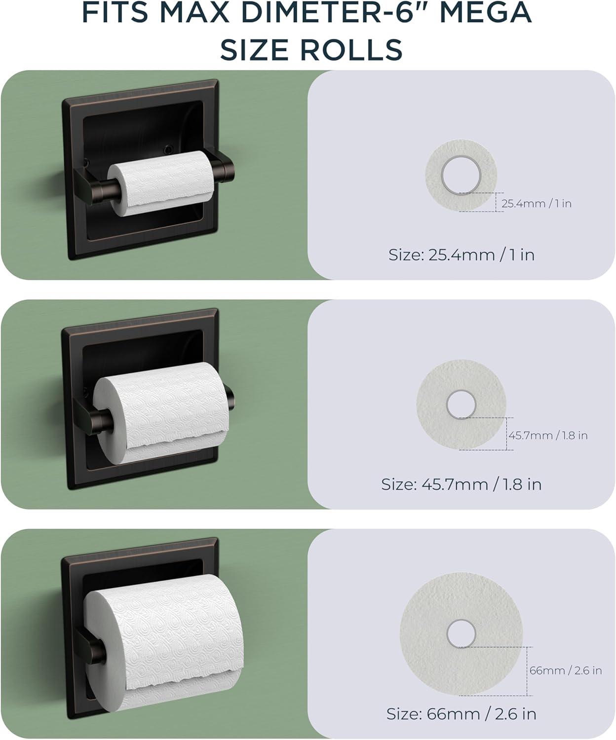 MEGA ROLL HOLDER: Deep tested to accommodate mega-large paper rolls well with a diameter of up to 6 inches. FORIOUS recessed toilet paper holder provides continuous parts replacement and dedicated technical support, there is nothing more convincing than reliability
