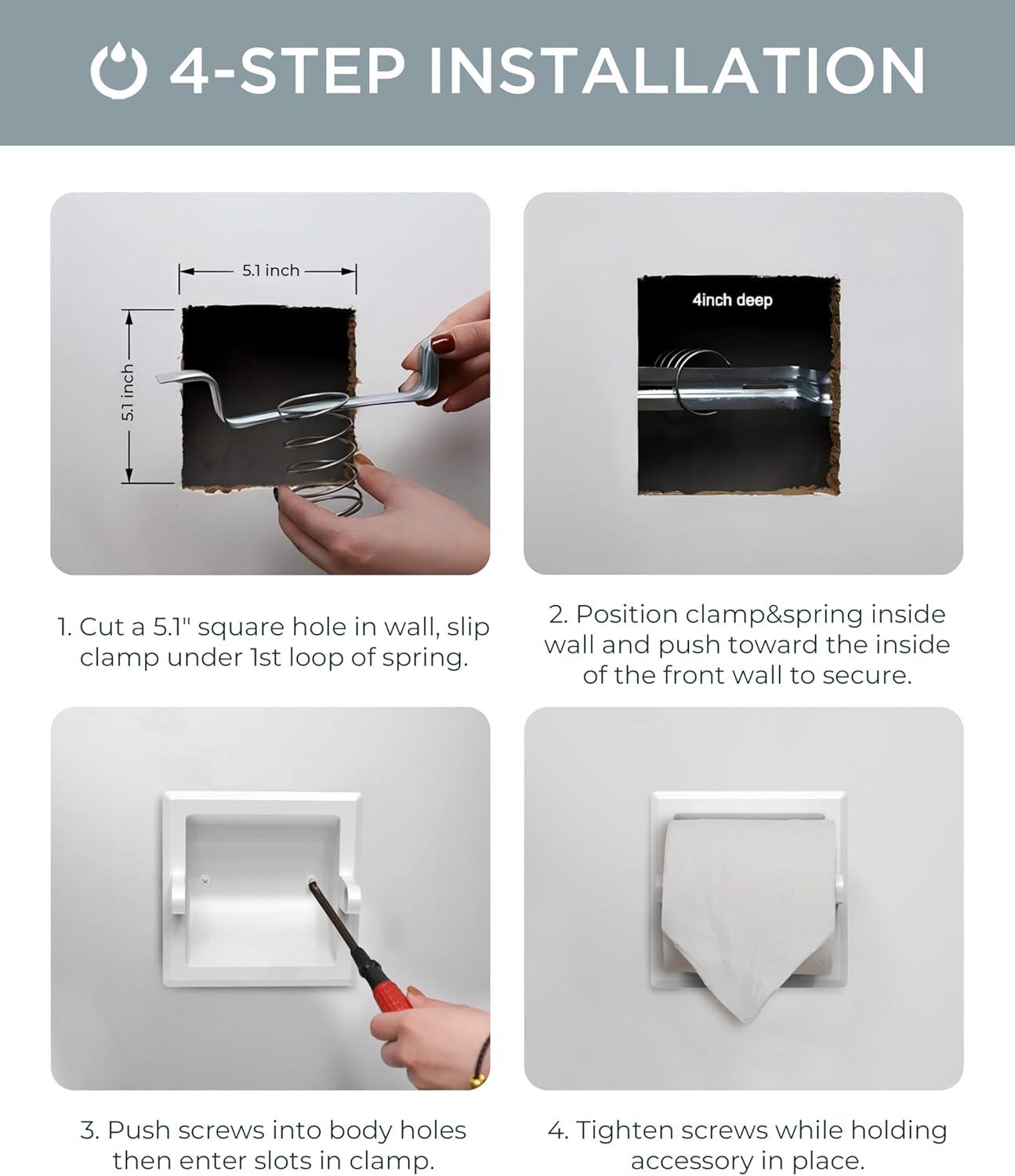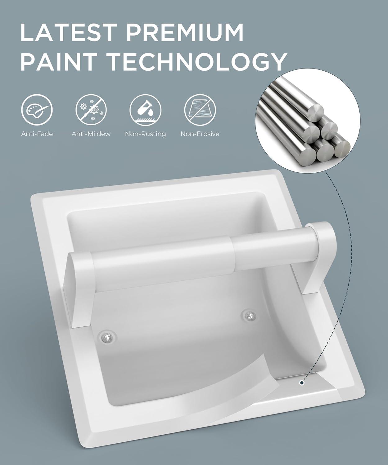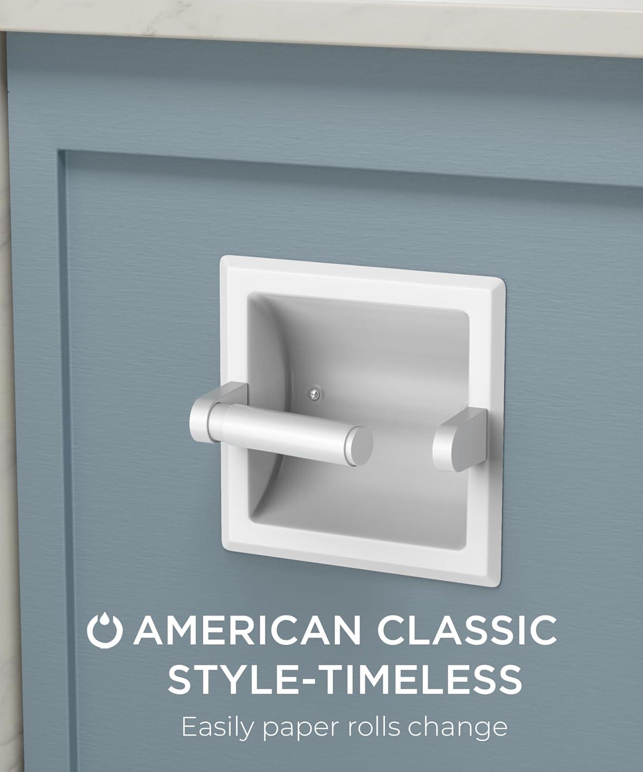 CLASSIC AMERICAN: The inset toilet paper holder structure is more sturdy, it can be installed in kitchen wooden cabinets, bathroom cement walls, bathroom cabinets, etc. The recessed design prevents everyday scratches, keeps dry and saves space