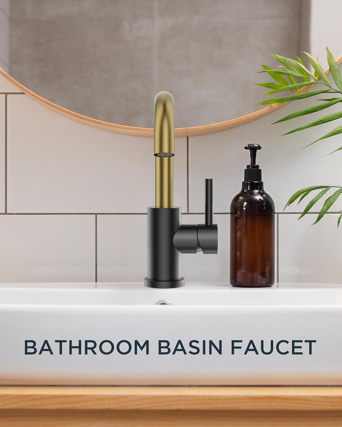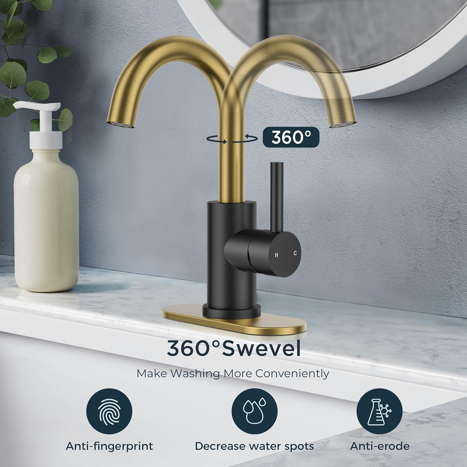 360° SWIVELS GOOSENECK SPOUT: The brushed nickel bathroom sink faucet can be rotated 360 degree randomly which increases the flushing range and making washing more convenient. Whether it is used for kitchen sinks, bar sinks, bathrooms, vanity, travel trailers, or RVs, it can be perfectly matched and full of personality.