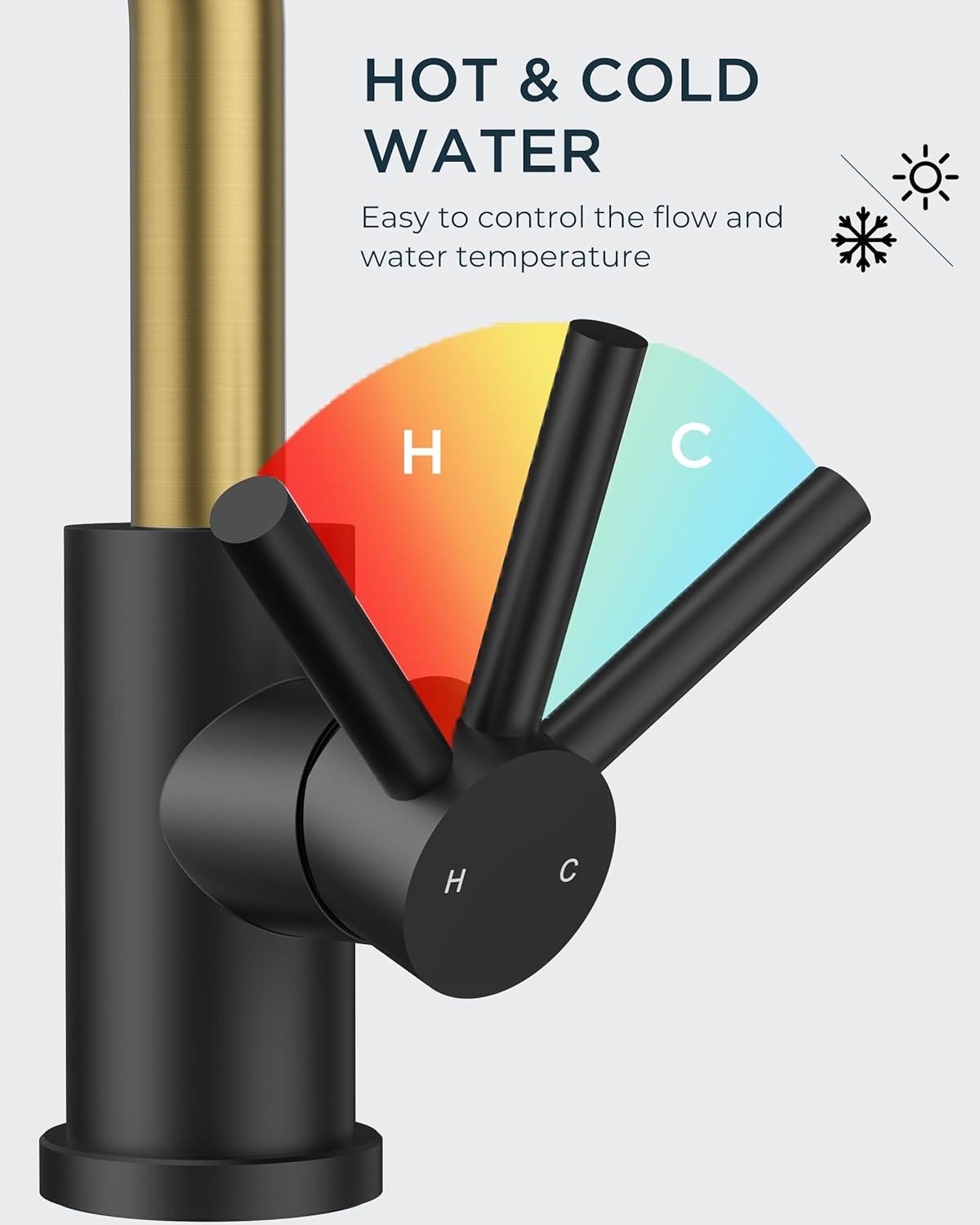 QUICK INSTALLATION IN MINUTES: Bathroom faucet with drain is easy control of hot and cold water. Which is convenient for adjusting water temperature and volume.Forious single hole bar sink faucet with a deck plate, it only not for 1 hole but also 3 hole sink.