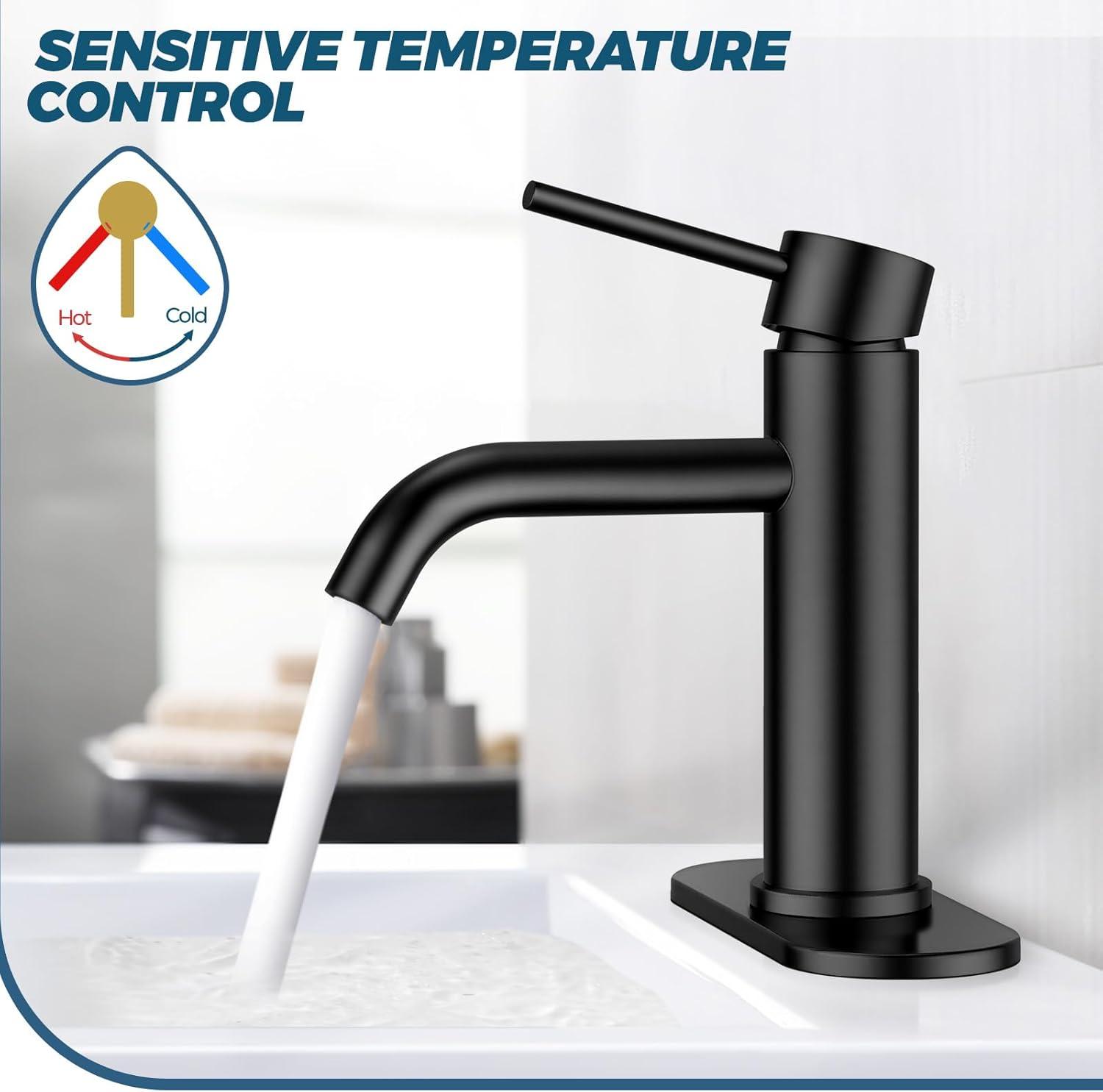 Maximum Efficiency: Single handle vanity faucet makes adjusting water flow and temperature easy with just one hand. The built-in bubbling FLOW RATE: 1.2gpm/4.5L/min at Max 60psi aerator saves 30% water and reduces splashing