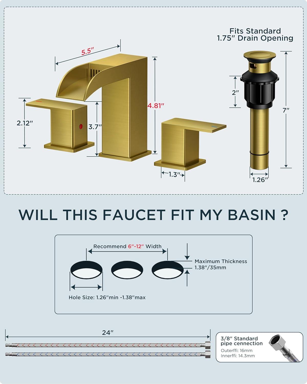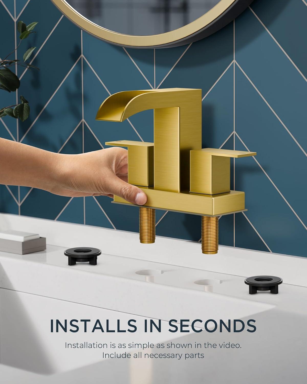 Safe & Certified for Your Family: This brushed gold bathroom faucet is lead-free, certified to CEC, NSF/ANSI/CAN 61 and cUPC standards. The rust-resistant finish stays flawless for years—perfect for homes with kids or hard water