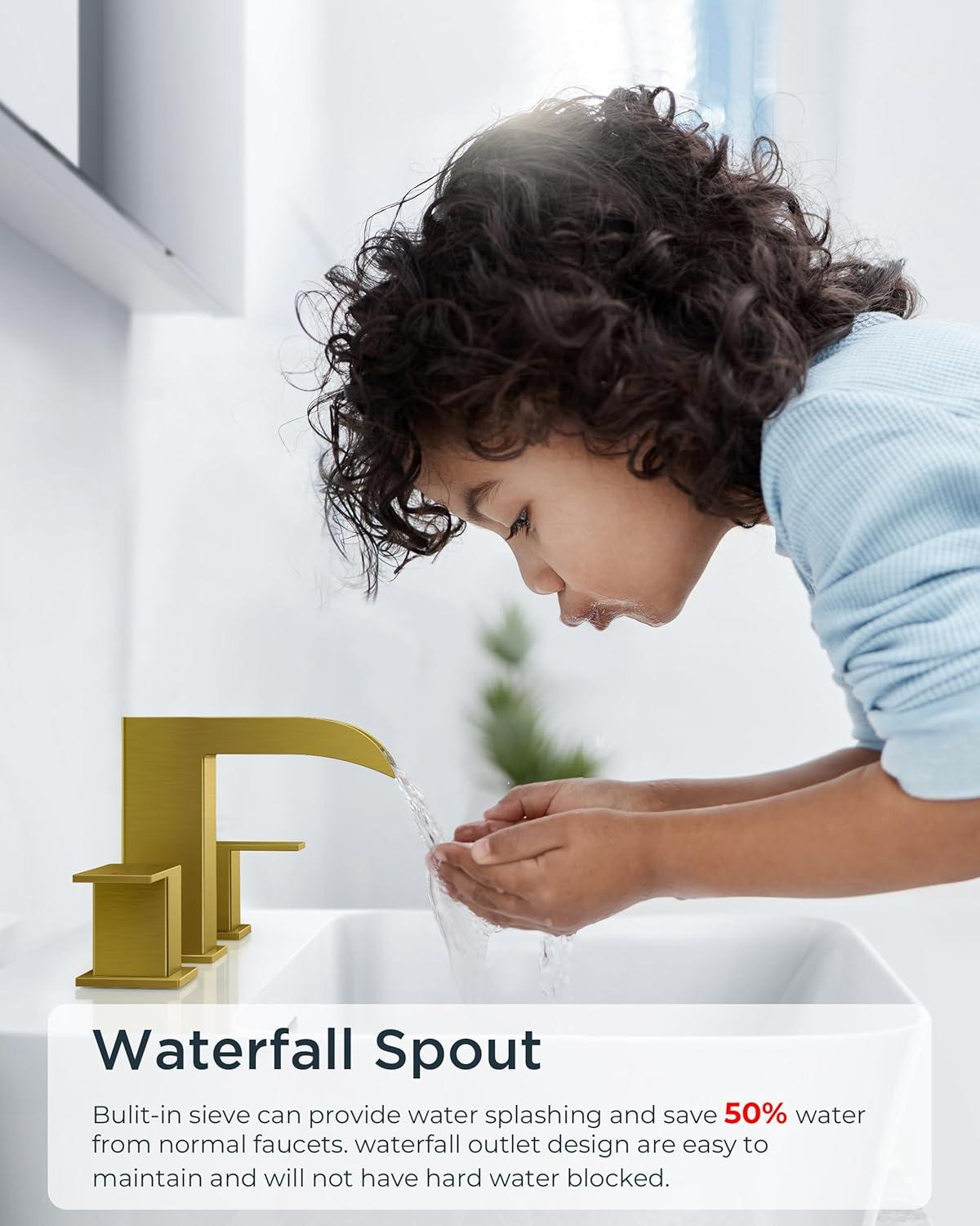 Stunning Waterfall Spout Design: Upgrade your bathroom with the FORIOUS 8 Inch widespread bathroom faucet, featuring a sleek 1.2″ waterfall spout for a smooth, splash-free flow. Perfect for daily use—brushing teeth, washing hands—even in low-pressure homes. Combines luxury with functionality!