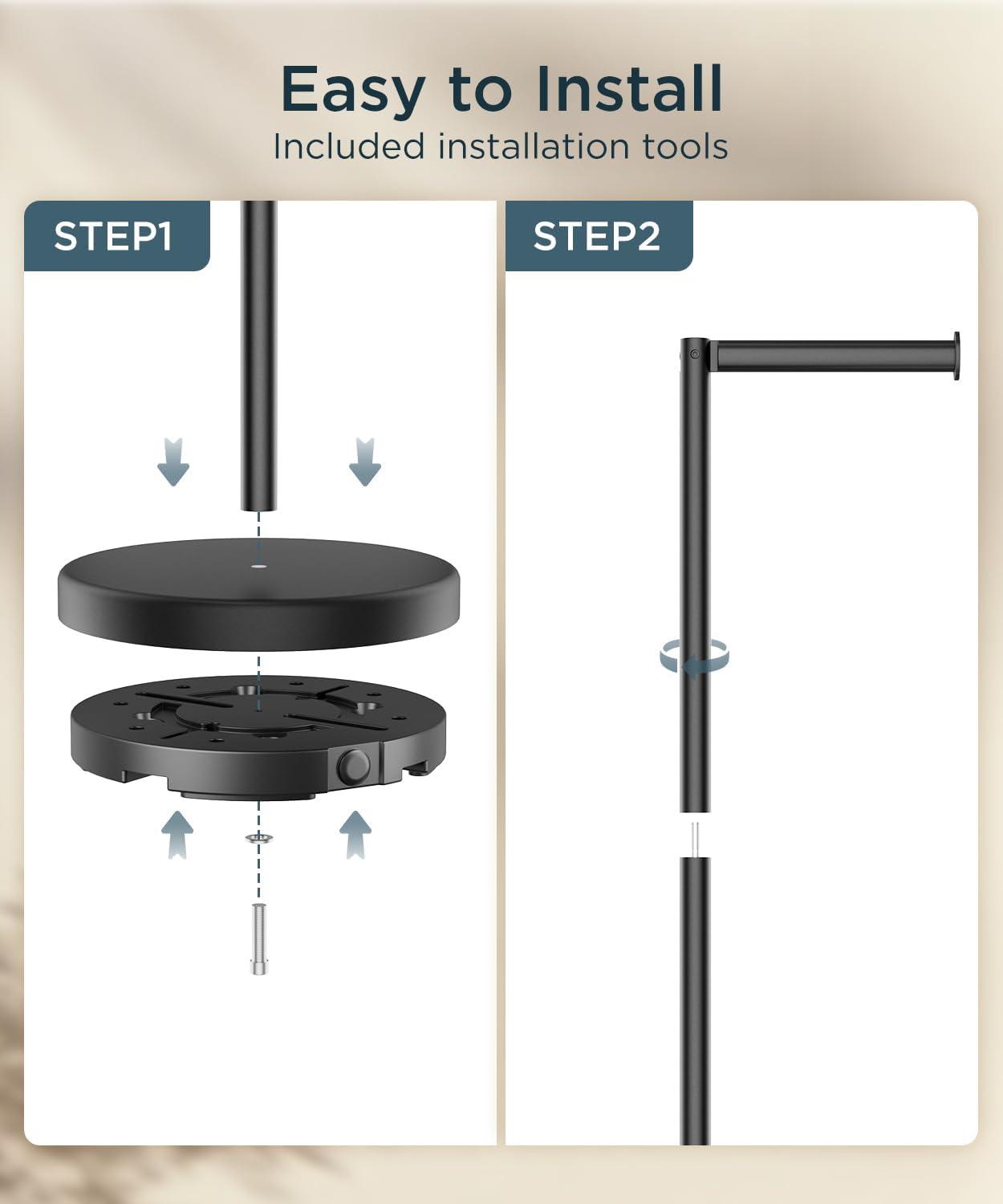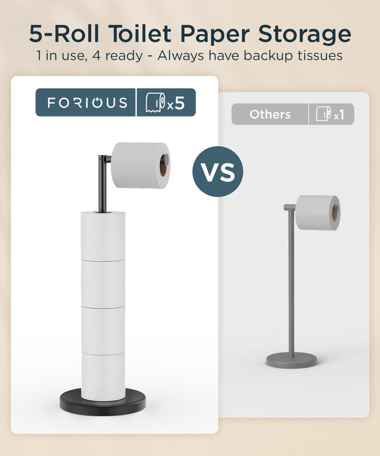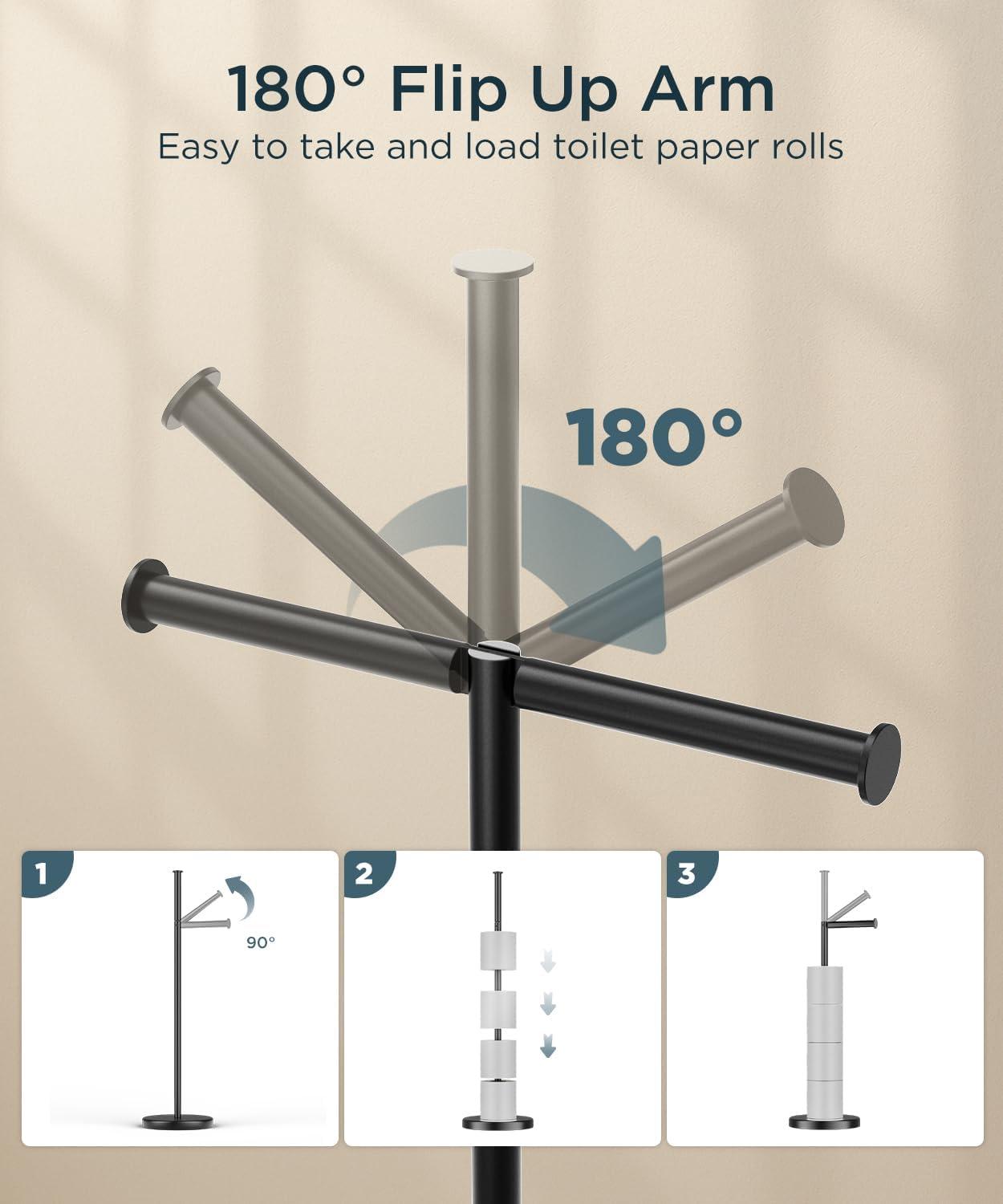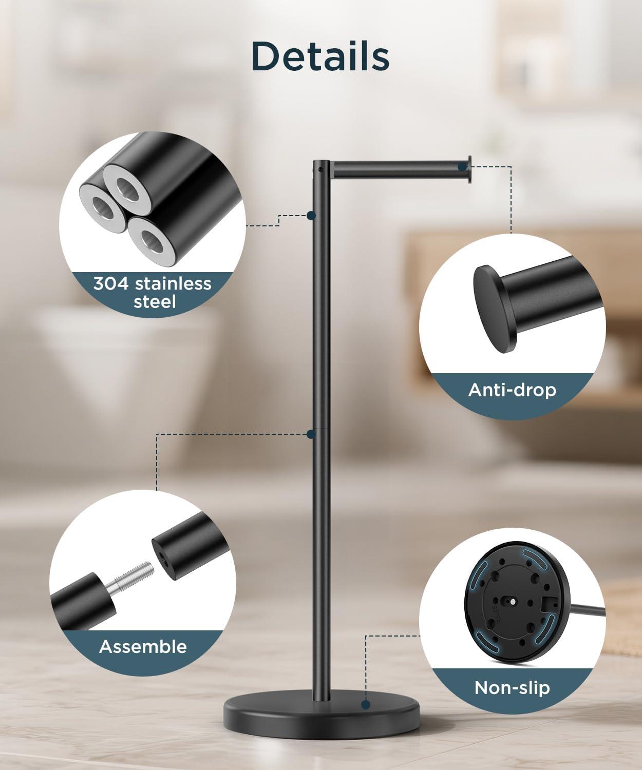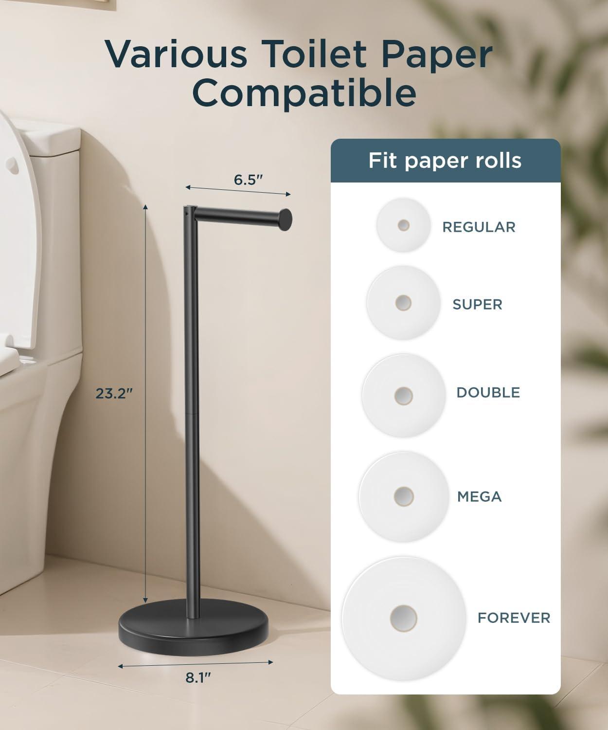 Stable Weighted Base: The 2.9 lb weighted base ensures this toilet paper stand stays securely in place, providing stability and preventing tipping. Its freestanding design allows for easy movement and convenient storage when not in use