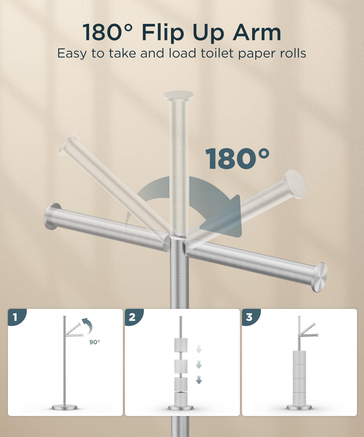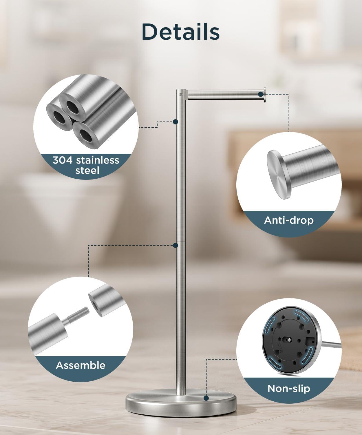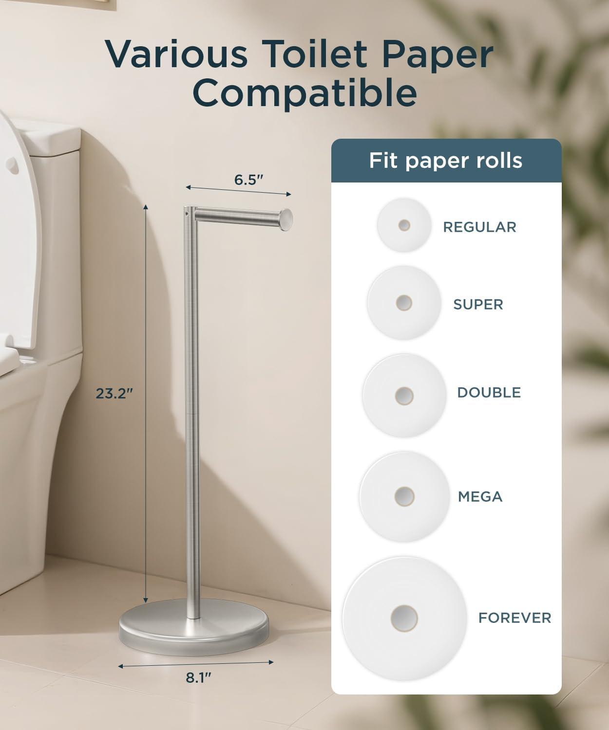 Stable Weighted Base: The 2.9 lb weighted base ensures this toilet paper stand stays securely in place, providing stability and preventing tipping. Its freestanding design allows for easy movement and convenient storage when not in use