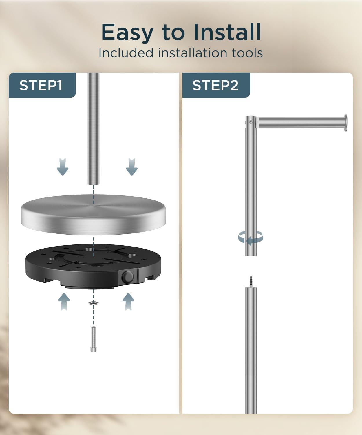 Easy to Install: Easy to assemble in one minute, so you can enjoy the functionality and stylish design of this toilet paper stand in no time. And our friendly customer support team is here to help with any questions or concerns