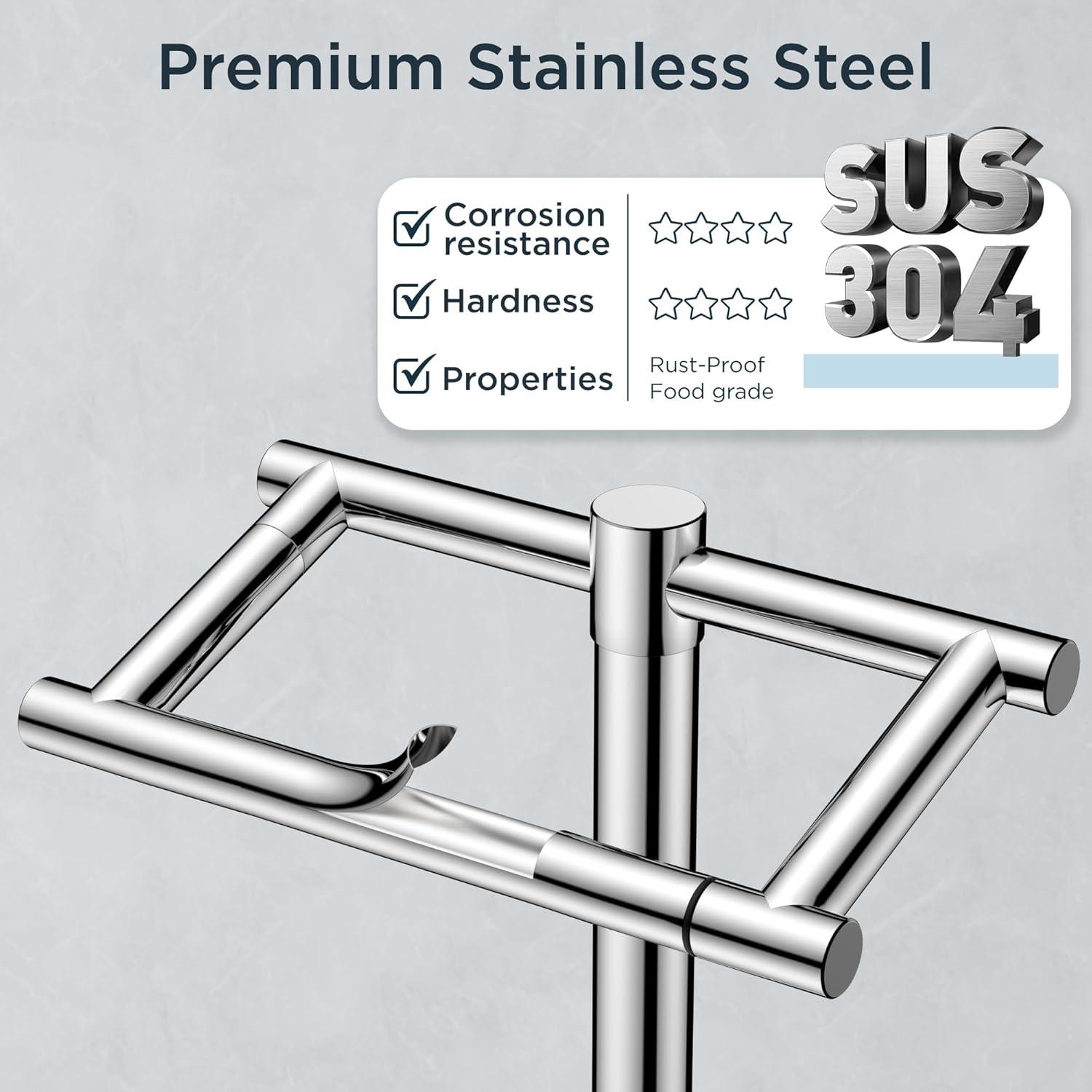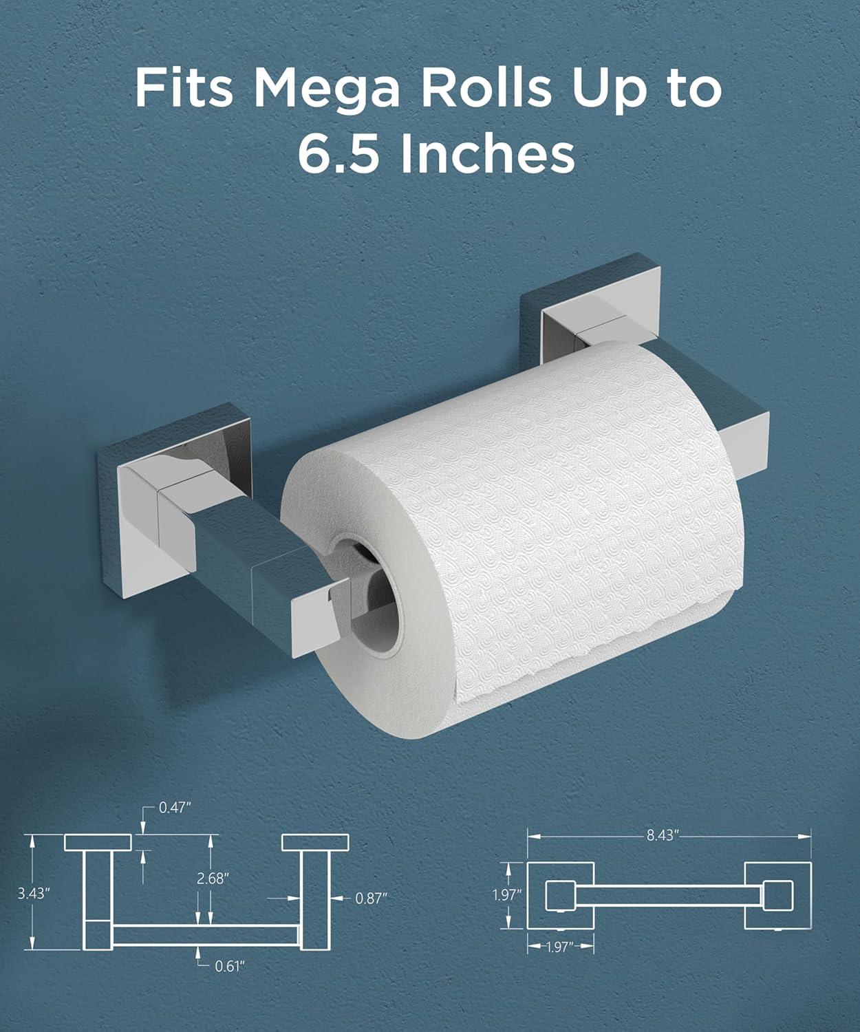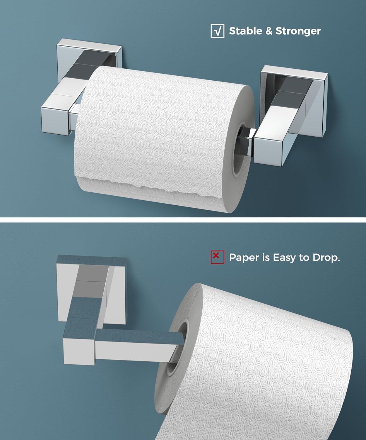 FORIOUS Toilet Paper Holder Wall Mount, Stainless Steel Rustproof Double Post Pivoting Tissue Roll Holder for Bathroom, Commercial Toilet Paper Dispenser (Matte Black, Square)(Chrome)