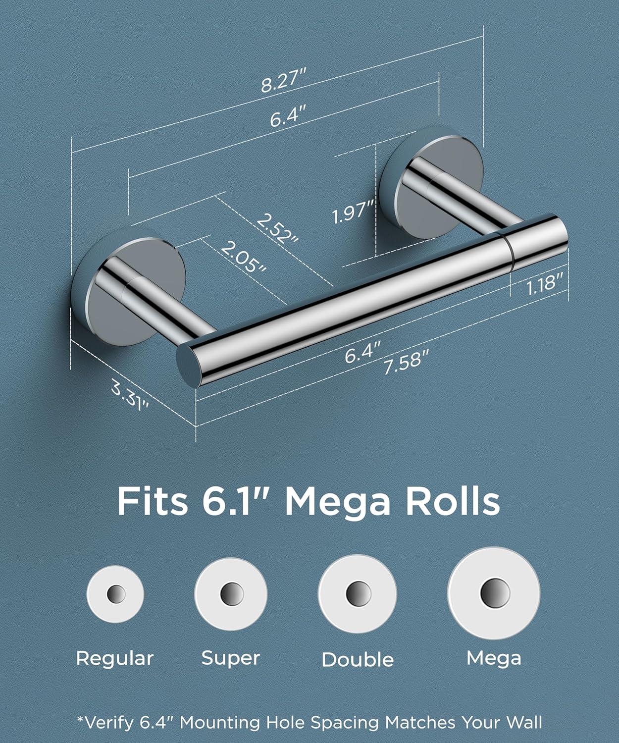 True Size: The gold toilet paper holder can accommodate large rolls with a maximum diameter of 6.1”, sufficient for daily use without being too noticeable, maximizing unused wall space. Note: Not suitable for oversized rolls > 6.1 inches in diameter