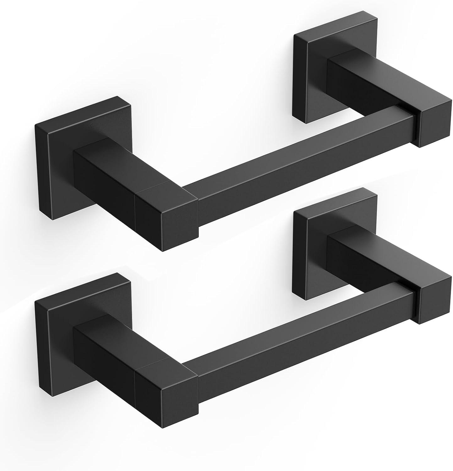 FORIOUS Toilet Paper Holder Wall Mount, Stainless Steel Rustproof Double Post Pivoting Tissue Roll Holder for Bathroom, Commercial Toilet Paper Dispenser (Matte Black, Square)(Matte Black)