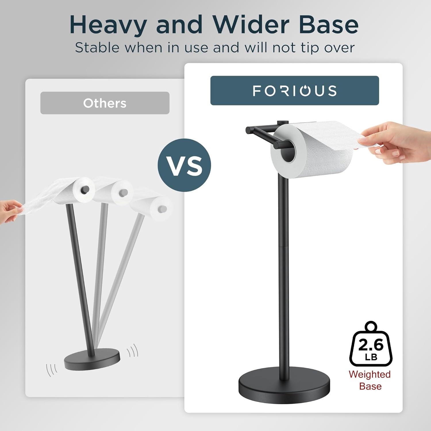 Upgraded: FORIOUS toilet paper holder uses the pivoting double-post design, the biggest advantage of which is to prevent the paper towel from slipping off, which flips up for U to put the new paper roll quickly and easily instead of the traditional squeeze together spring