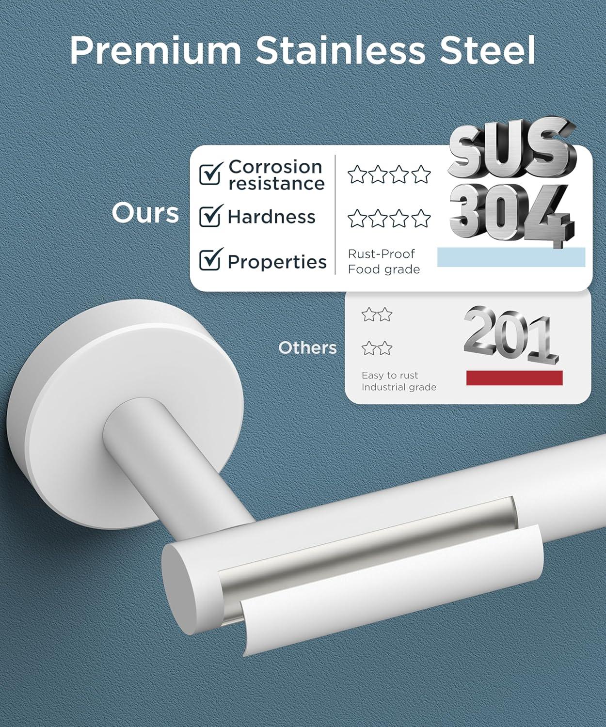 FORIOUS Toilet Paper Holder Wall Mount, Stainless Steel Rustproof Double Post Pivoting Tissue Roll Holder for Bathroom, Commercial Toilet Paper Dispenser (Matte Black, Square)(White)