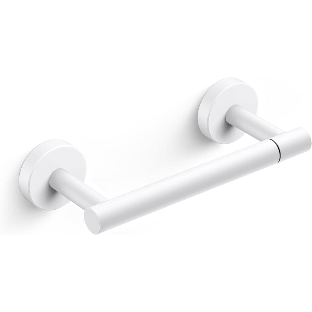 imageFORIOUS Toilet Paper Holder Wall Mount Stainless Steel Rustproof Double Post Pivoting Tissue Roll Holder for Bathroom Commercial Toilet Paper Dispenser Matte Black SquareWhite