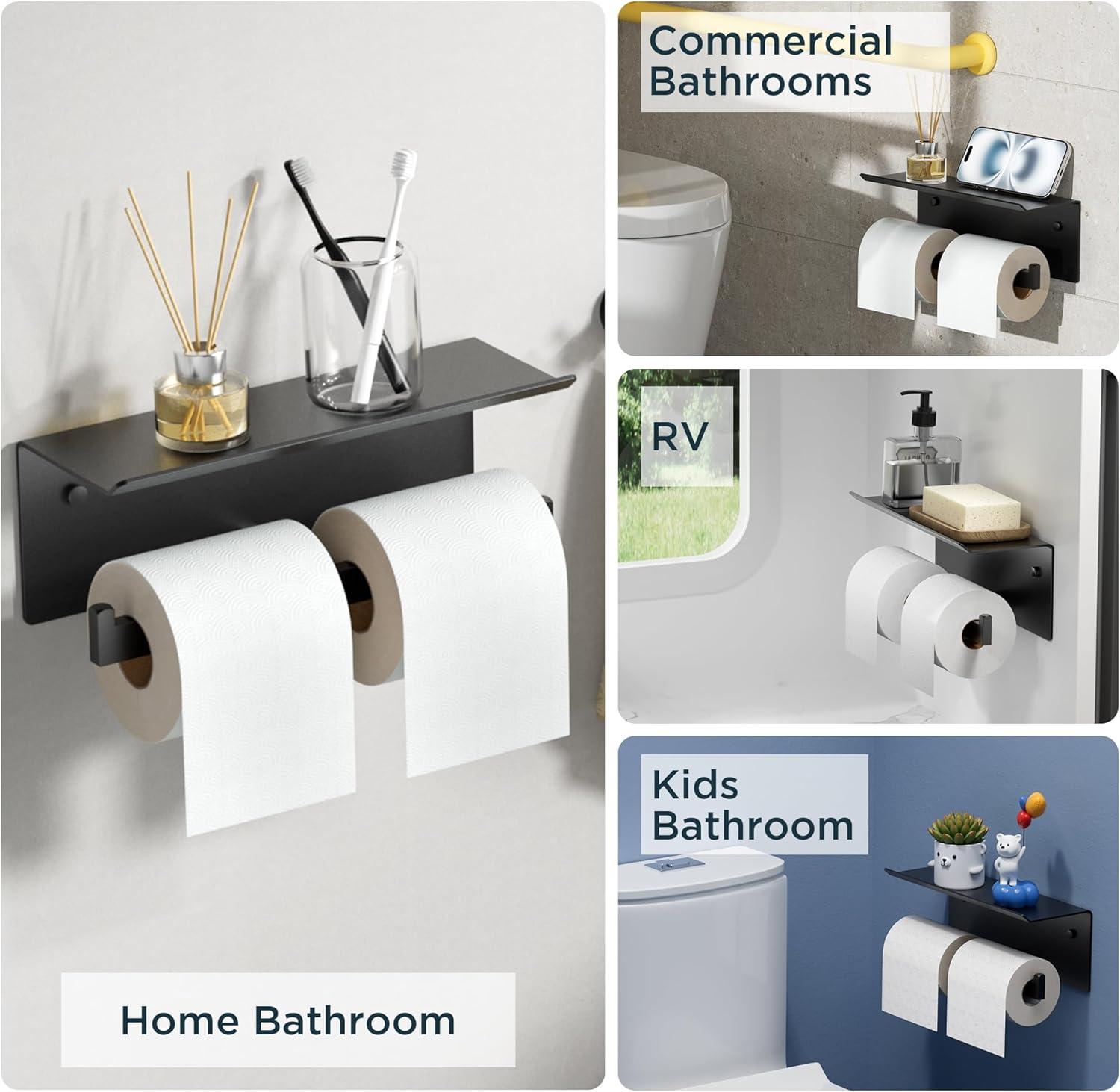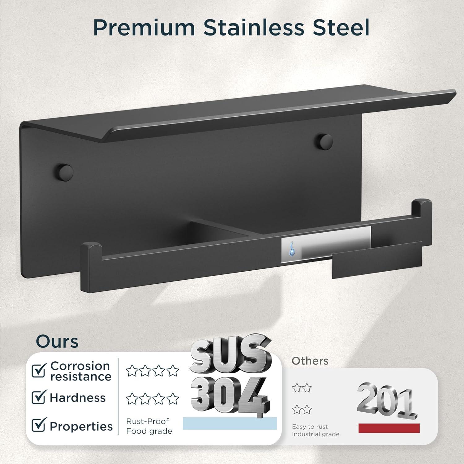 Premium 304 Stainless Steel: Made of SUS304 stainless steel, this double toilet paper holder with phone shelf resists rust, scratches, and fading, ensuring long-lasting durability. Modern and simple design, perfect for home or commercial bathrooms