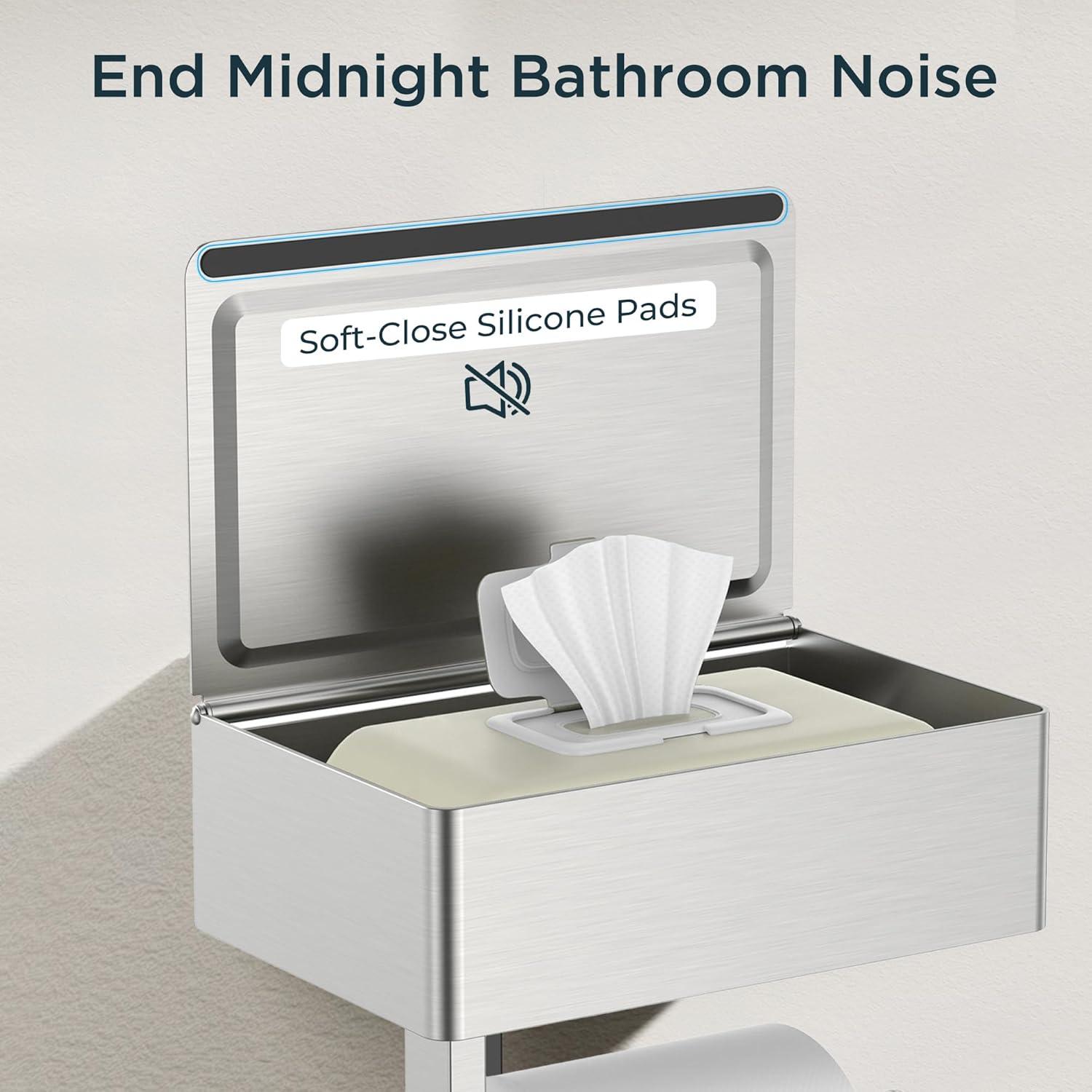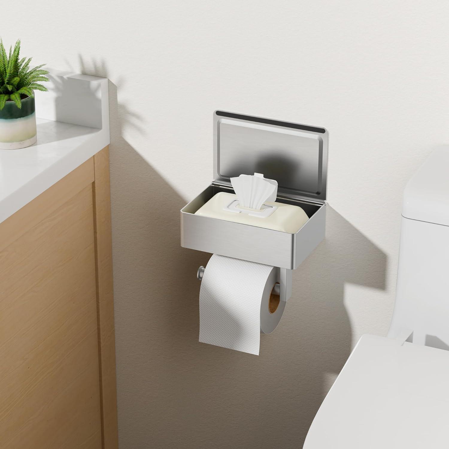 Discreet & Versatile Storage: This toilet tissue holder features a built-in, lidded storage shelf designed for organized and private storage of wipes, feminine hygiene products, or other personal essentials—keeping your bathroom tidy and clutter-free