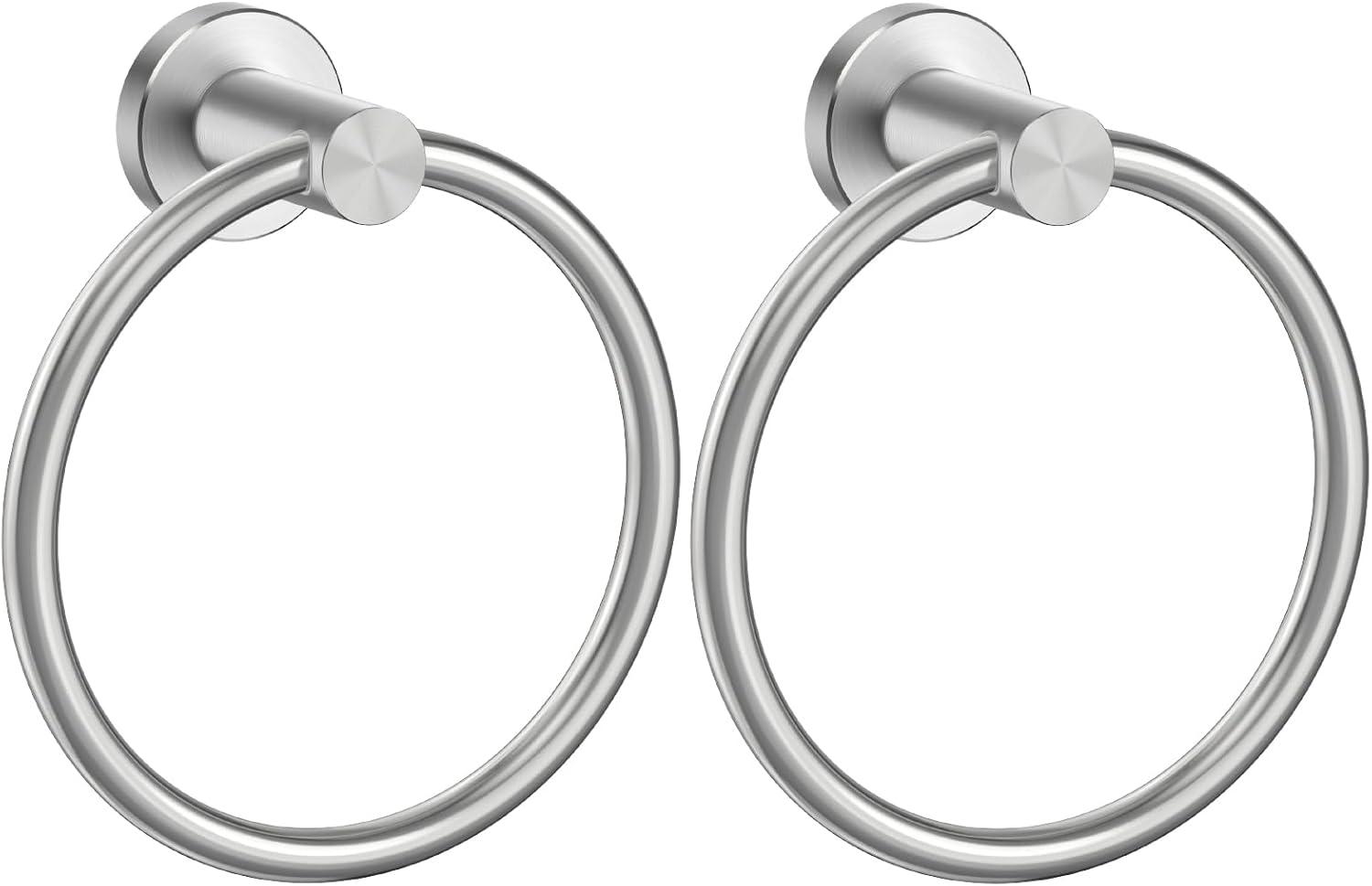 FORIOUS Towel Ring, SUS304 Stainless Steel Modern Hand Towel Holder Rack Hanger Round for Bathroom Wall Mounted, Ideal for Bath, Kitchen, RV, Matte Black(Brushed Nickel)