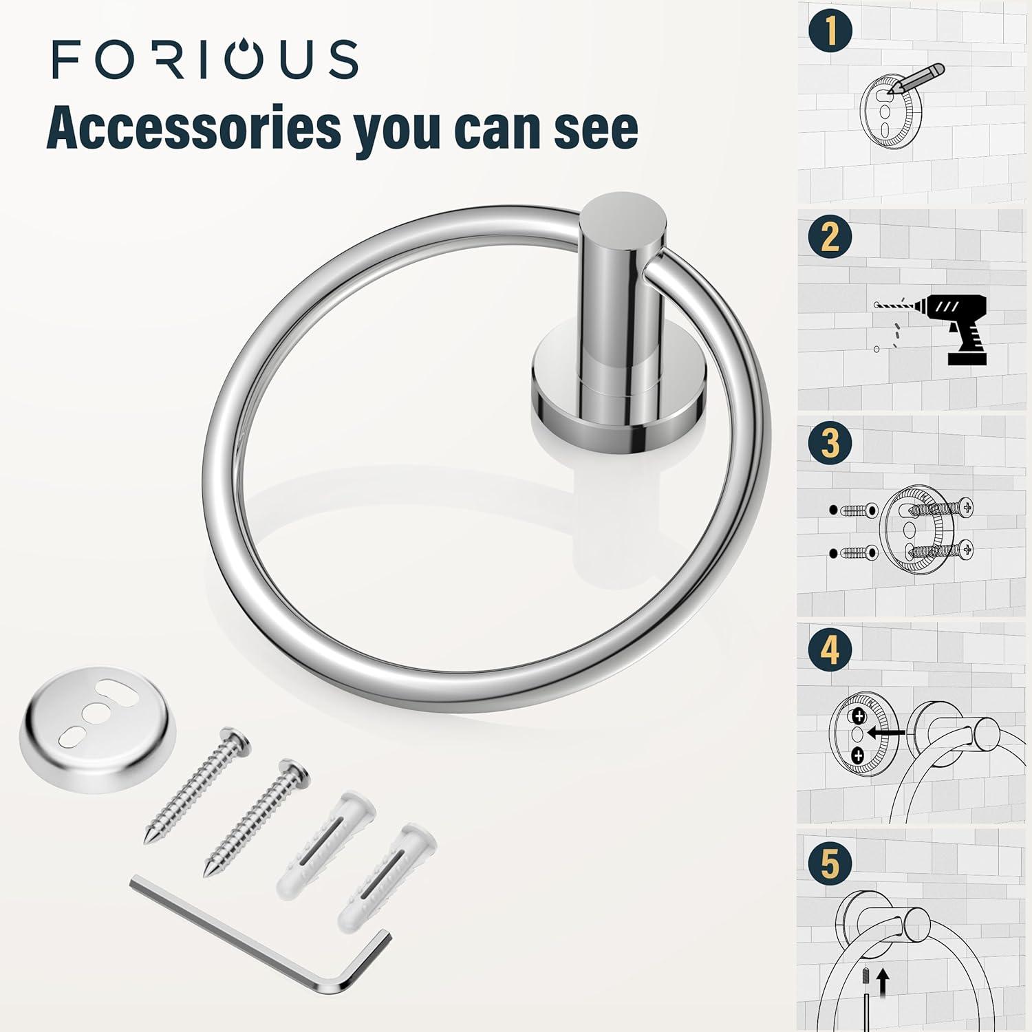 Heavy Duty Material: FORIOUS wall mounted bathroom towel holder made from 100% premium SUS 304 stainless steel and high quality construction for added durability and reliability. The materials is anti-rust, anti-corrosion, and daily scratches, and unlike other towel rings with sharp edges