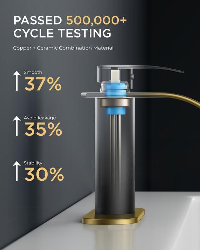 Leak-Free: Built with a ceramic cartridge tested through 500,000 cycles, this bathroom faucet resists hard water. Smooth handle control ensures drip-free operation for years, Flow rate: 1.2gpm/4.5L/min at Max 60psi